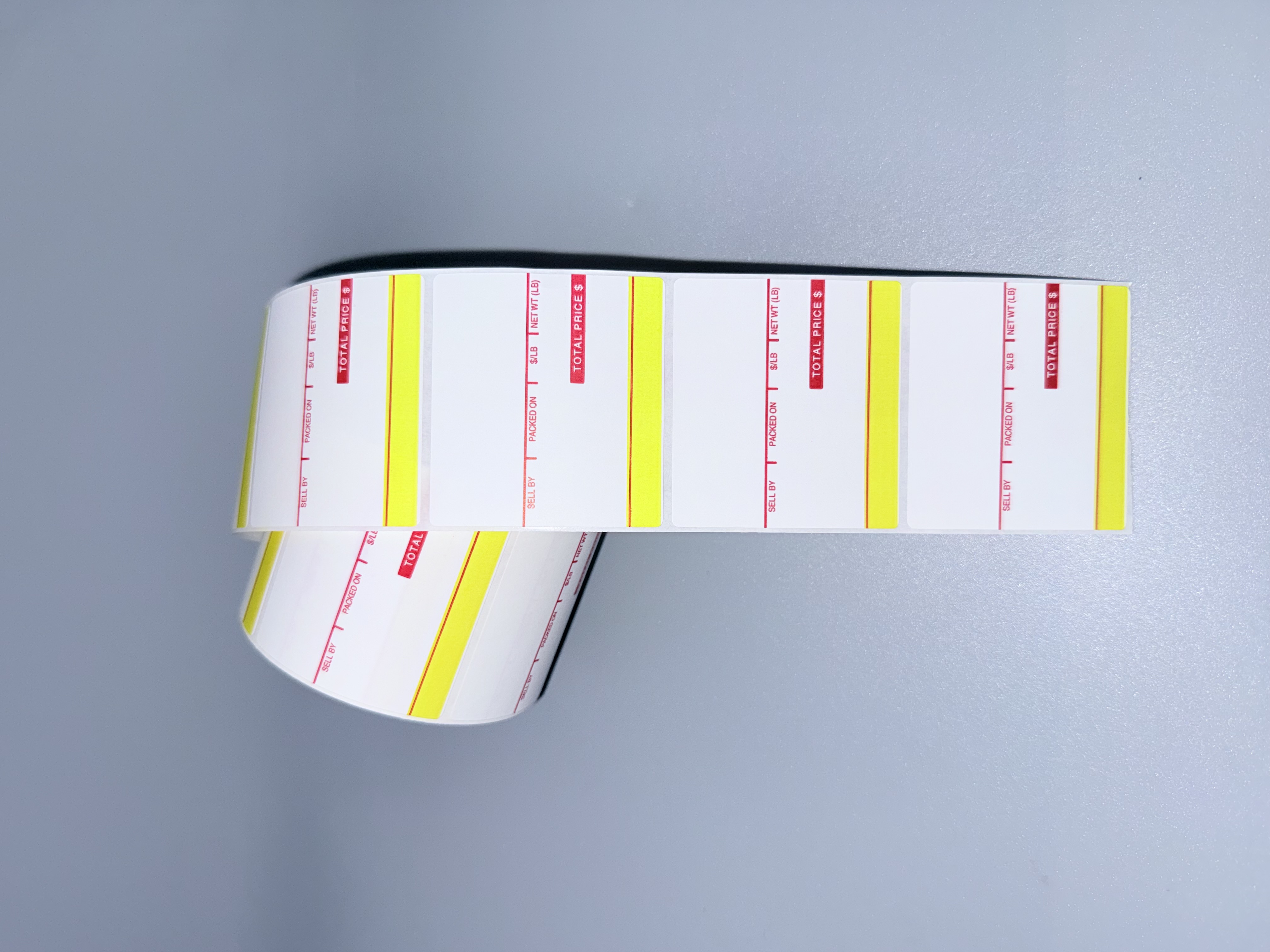 Ishida 64mm x 59mm UPC labels. 625 labels per roll, 12 rolls per case. Stock Color: Red and Yellow. Case Weight: 12 lb.